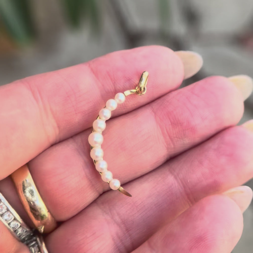14K Gold Mid-Century Modern Pearl Crescent Moon Pendant
