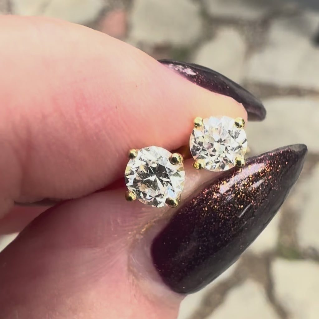 18k Gold 0.90 Carat Old European Cut Diamond Stud Earrings