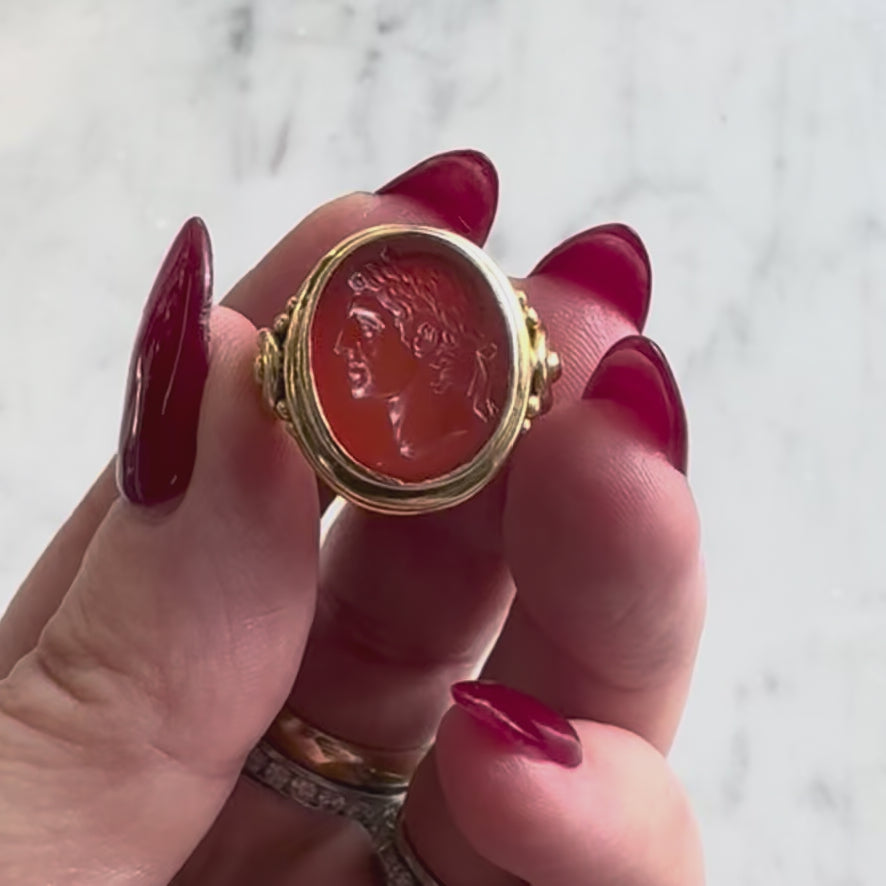 Victorian 18K Gold Carnelian Intaglio of Julius Caesar Ring